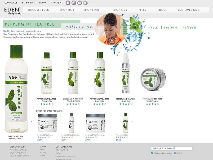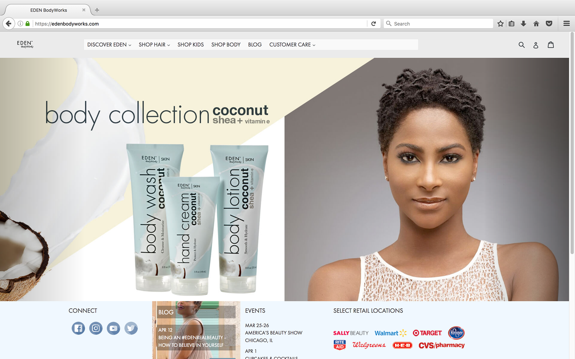 We worked with EDEN Bodyworks for over a decade on brand images, social media, news letters and collateral. In 2011 we implemented a basic design direction for the brand's site. In 2016 we were honored to design a fresher, more fashion-forward web experience. We teamed with Jason McIntosh (developer extraordinaire) to implement the new design.